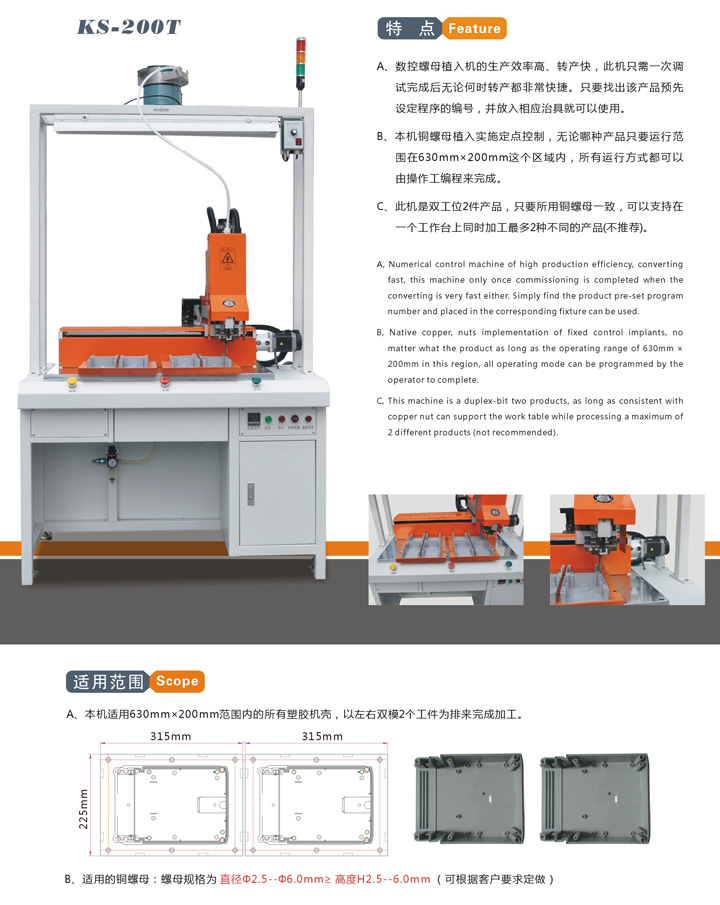 產(chǎn)品名稱:電表殼數(shù)控螺母植入機(jī) 產(chǎn)品編號(hào):KS-200T 更新時(shí)間:2013.04.02 出品單位:深圳市金盛機(jī)電科技有限公司 瀏覽次數(shù): |