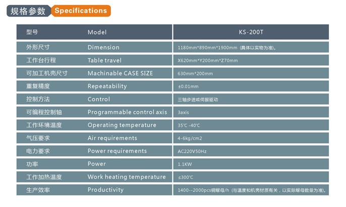 產(chǎn)品名稱:電表殼雙頭植入埋釘機(jī) 產(chǎn)品編號:KS-200T-M4 更新時間:2014.05.31 出品單位:深圳市金盛機(jī)電科技有限公司 瀏覽次數(shù): |