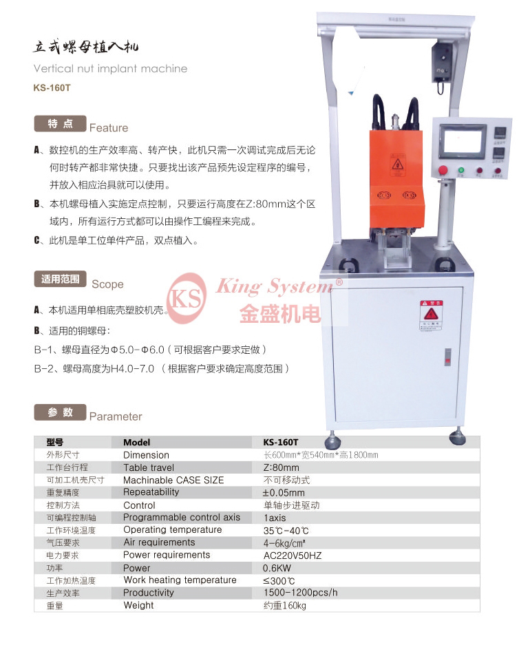 產(chǎn)品名稱:KS-160T 立式電表機 產(chǎn)品編號:171048-605 更新時間:2015.06.24 出品單位:螺母熱熔機,螺母機,埋釘機,自動螺母熱熔機,自動埋釘機,自動螺母植入機-深圳市金盛機電科技有限公司 瀏覽次數(shù): |